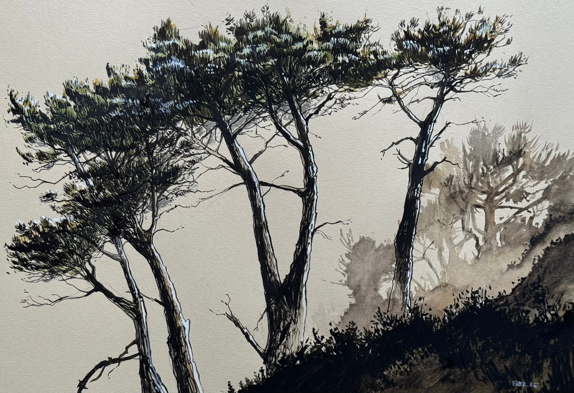 L’œuvre a été réalisée avec des pigments extra-fins des marques Sennelier et Daniel Smith. La gamme Sennelier, utilisée par de nombreux peintres depuis plus d’un siècle, se distingue par sa vivacité et sa transparence. Les aquarelles Daniel Smith, quant à elles, offrent une densité chromatique particulière, appréciée pour leur richesse et leur résistance à la lumière.