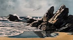 L’œuvre est signée au recto. Elle est encadrée sous verre dans un cadre noir fin, avec un passe-partout blanc adapté au format de l’image. Le cadre mesure 50 × 40 cm au total. L’ensemble est sobre, soigné, prêt à être accroché.