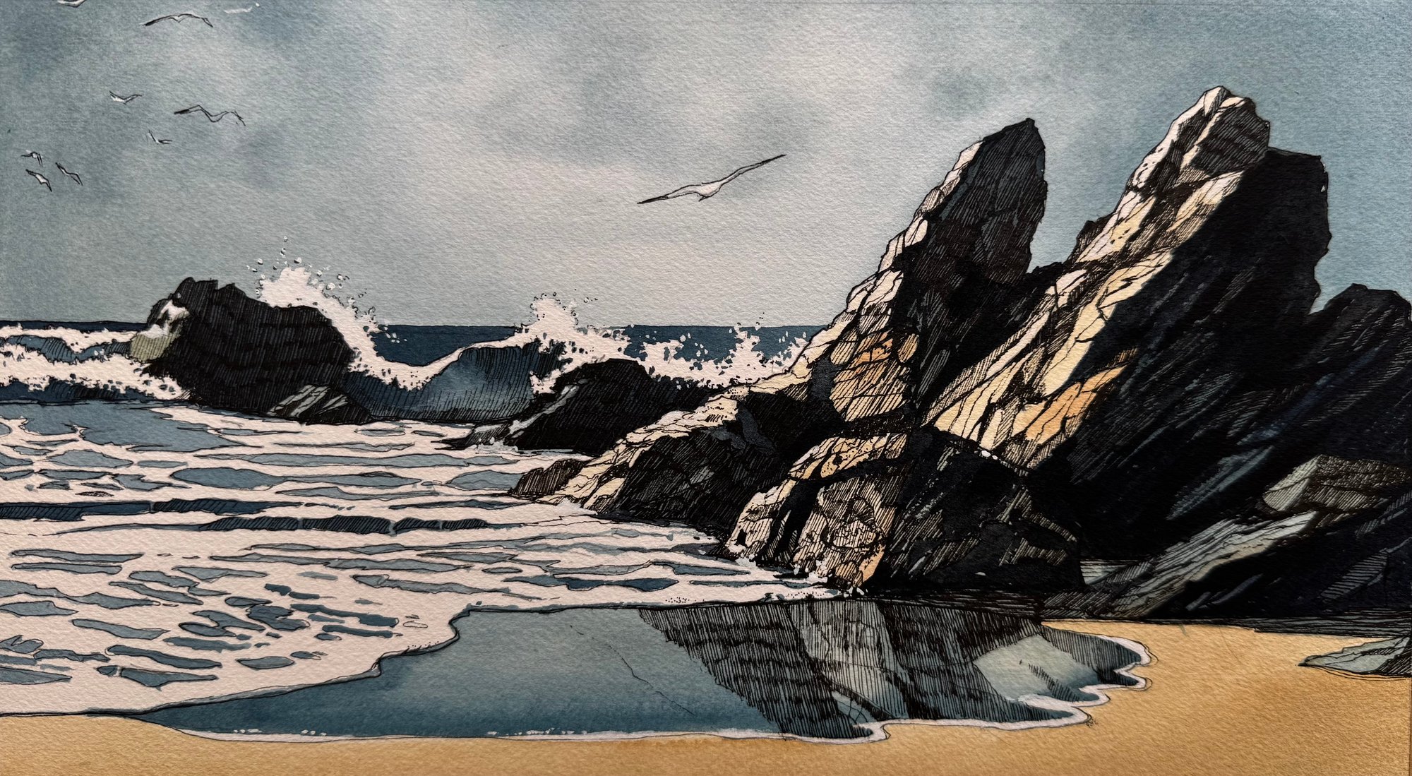 L’œuvre a été réalisée avec des pigments extra-fins des marques Sennelier et Daniel Smith. La gamme Sennelier, utilisée par de nombreux peintres depuis plus d’un siècle, se distingue par sa vivacité et sa transparence. Les aquarelles Daniel Smith, quant à elles, offrent une densité chromatique particulière, appréciée pour leur richesse et leur résistance à la lumière.